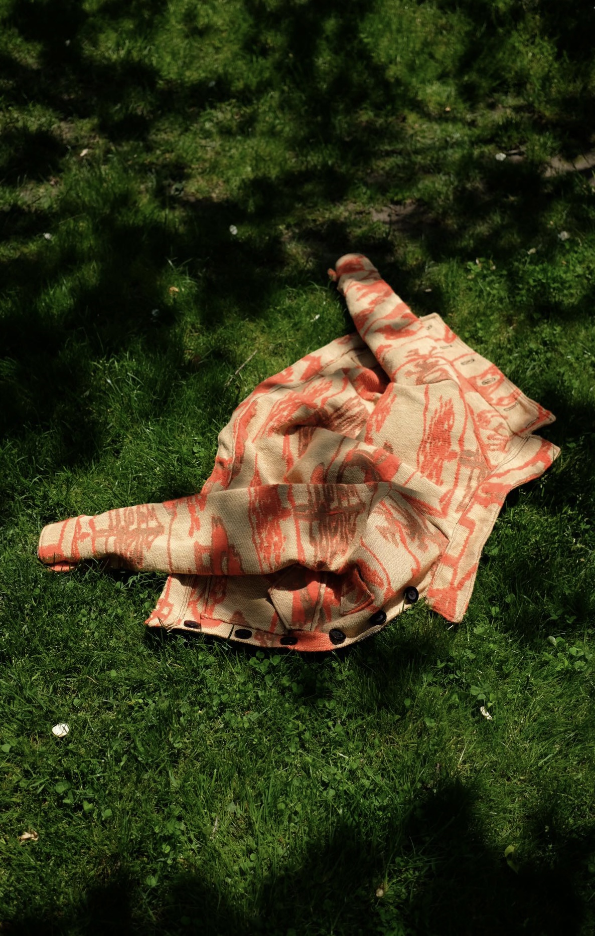 A work that describe the memory of the spring summer like vibe. I was in my homecity, which is a small place with lots of greens and natural landscapes. I want to bring the energy and the blossoms into the fabric.